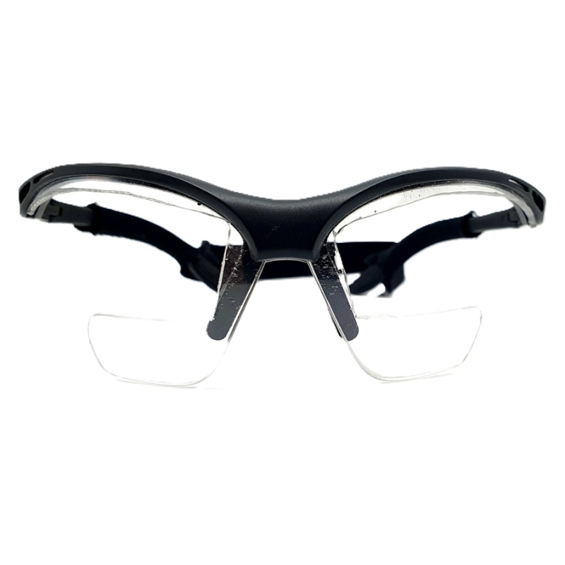 These running glasses lenses have only a magnification area at the bottom for reading a map in close-range. The minimal frame does not hinder visibility at a distance.